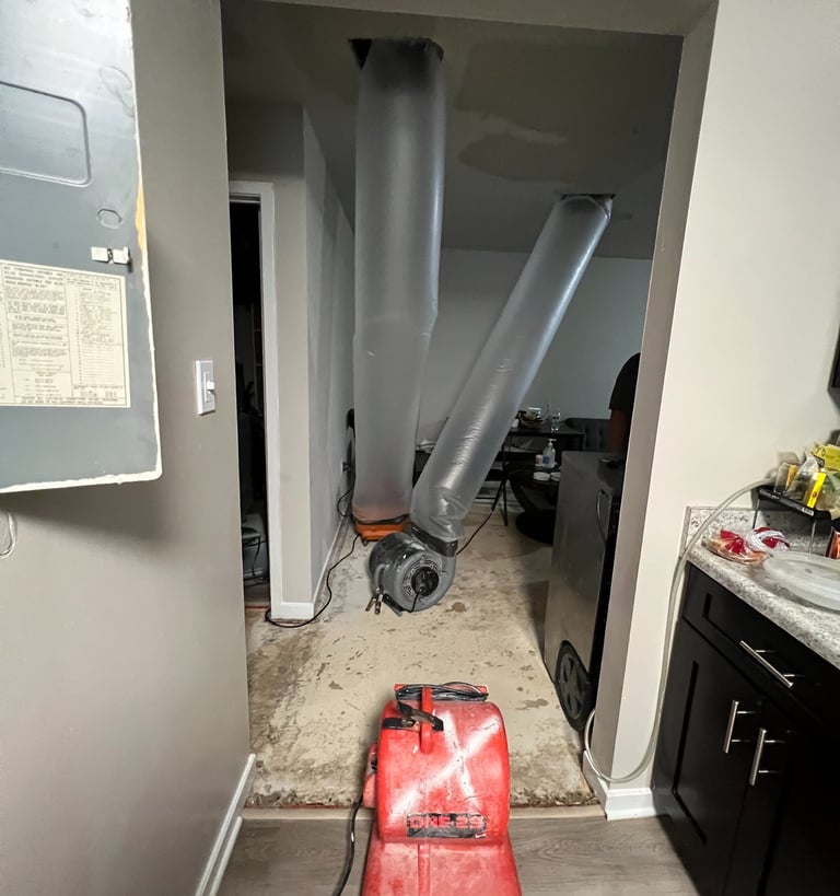 Rebuild the affected area to its original condition, including drywall replacement, flooring restoration or replacement, and painting.